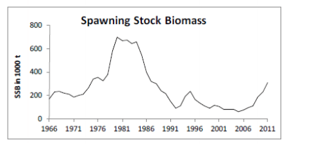 Another of the world’s biggest cod fisheries, in the Baltic sea, has staged a remarkable recovery in recent years following an almost classical case of overexploitation in the 1980s and a reluctance to take the necessary action until about 2004/5 (Figure 4).